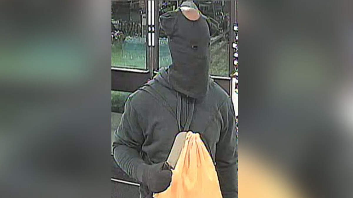 A robbery suspect in Virginia had a unique way of hiding his identity from the surveillance cameras inside a 7-Eleven in Chesapeake, Virginia. The suspect walked into the convenience store last week wearing a black baby t-shirt over his head with two holes cut out so he could see. The short-sleeved shirt did the job as the only thing visible was part of the man's balding head. He was armed with a knife and had a yellow drawstring bag draped over his chest.
